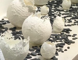 30 cotton pods, 2″ to 10″ dia. with stones installation, ($2,750)